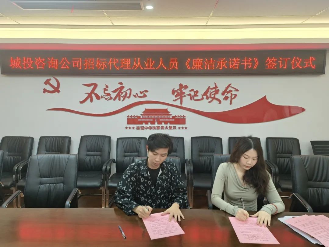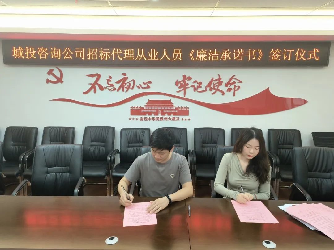 为强化作风建设、严明纪律规矩,筑牢廉洁防线,咨询公司与每一位招标代理从业人员签订了《招标代理从业人员廉洁承诺书》,并经常性开展廉洁执业教育,增强自觉接受监督的意识,切实做到忠于职守,廉洁从业,营造风清气正的良好氛围,为公司高质量发展提供坚强纪律保障。